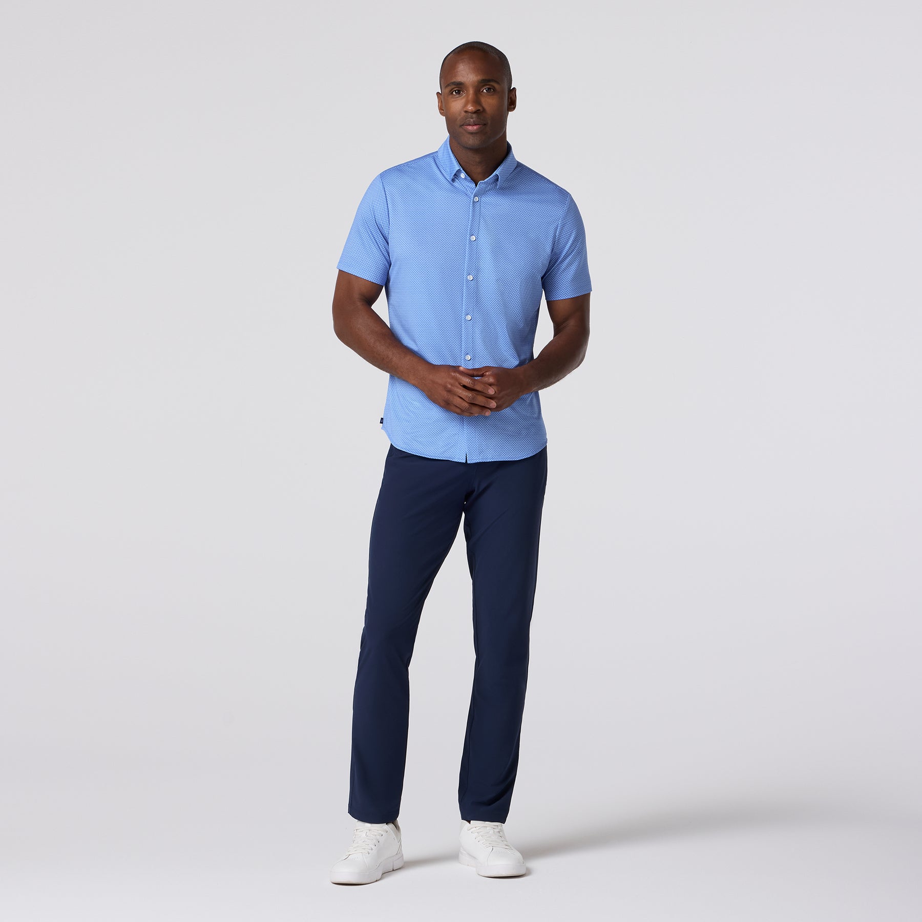 The White Dot Halyard is a lightweight finely textured knit that stretches to move with and is designed with moisture wicking fabric to keep you cool even on the hottest days.