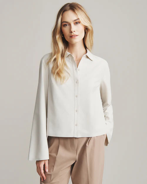 The Rhone Mirage Crop Blouse effortlessly combines style and functionality for the modern wardrobe. Its cropped length and chic bell sleeves create a contemporary, polished look without any fuss, making it versatile enough for work or casual outings. Built-in UPF 50+ protection shields your skin from harmful UV rays, while the C0 DWR-treated fabric repels water, keeping you comfortable in unpredictable weather. Crafted from a lightweight, breathable material, this blouse offers all-day comfort. Thoughtful bonded side slits add subtle detail and ease of movement, enhancing both style and practicality. A smart choice for those who value elegance with performance.